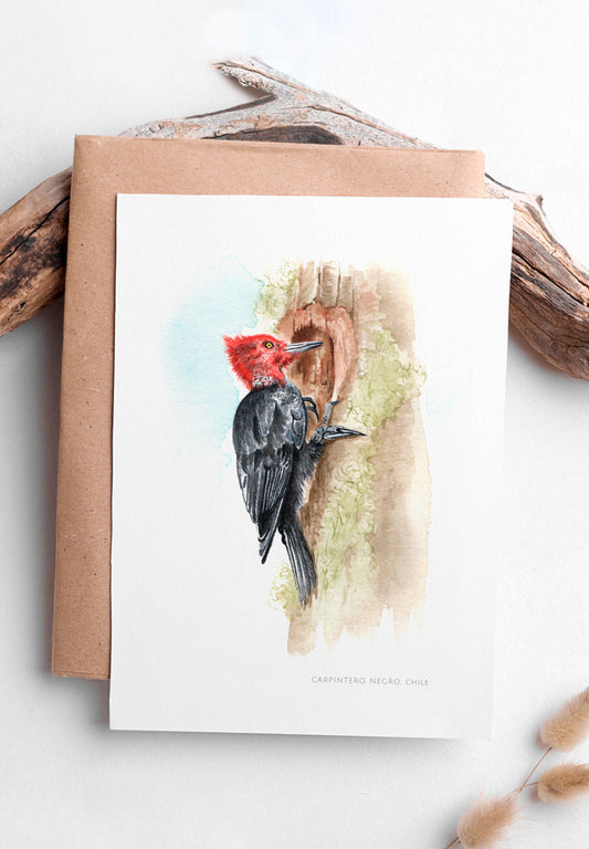 Ave atractiva y representativa de los bosques templados y subantárticos de Sudamérica, distribuída en Chile desde la cordillera de la Región de O’Higgins hasta Isla Navarino y desde Neuquén hasta Tierra del Fuego en Argentina. Se distingue por su gran tamaño, pico macizo y garras fuertes, presentando un marcado dimorfismo sexual. El macho destaca por su cabeza roja, cresta corta y cuerpo negruzco, en tanto la hembra es completamente negra y posee una cresta larga y rizada. A menudo se les puede ver en pareja o grupos familiares, ya que el único juvenil que crían los padres se queda hasta la siguiente temporada. Construye cavidades golpeando fuertemente la corteza de los árboles y como no vuelven a ocuparlas, son reutilizadas por otras especies de aves y pequeños mamíferos. Su dieta consiste principalmente en larvas de insectos, pero también consume frutos y depreda sobre reptiles y polluelos de aves más pequeñas. La deforestación del bosque nativo ha contribuido a la declinación y fragmentación de sus poblaciones.