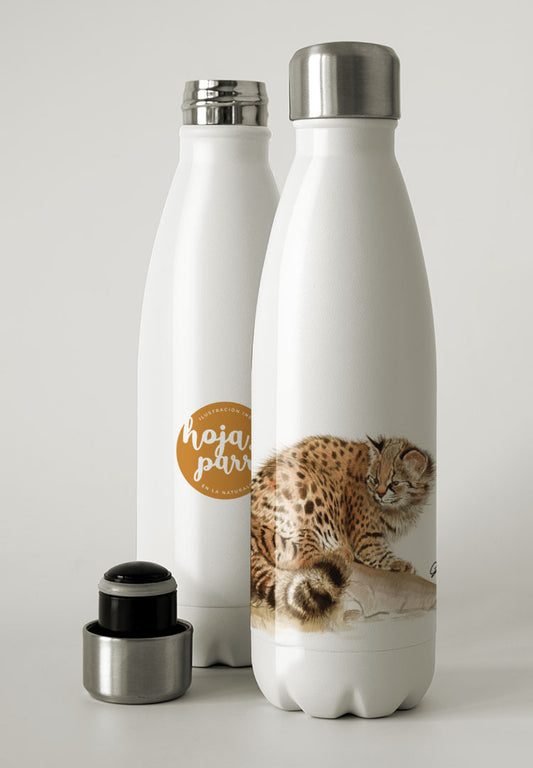 Gato salvaje propio de Sudamérica. Es muy parecido a los gatos caseros, pero mide unos 70 cms. de largo, mas 35 cms. de cola. Su color es plomizo rubio, con manchas alargadas rojizas o grises en el dorso y rayitas en la nuca hasta los hombros. En las patas y parcialmente en la cola lleva franjitas transversales café. Su cabeza es corta y ancha, y su cuerpo es muy esbelto.