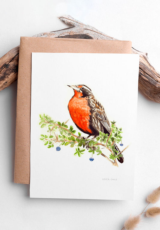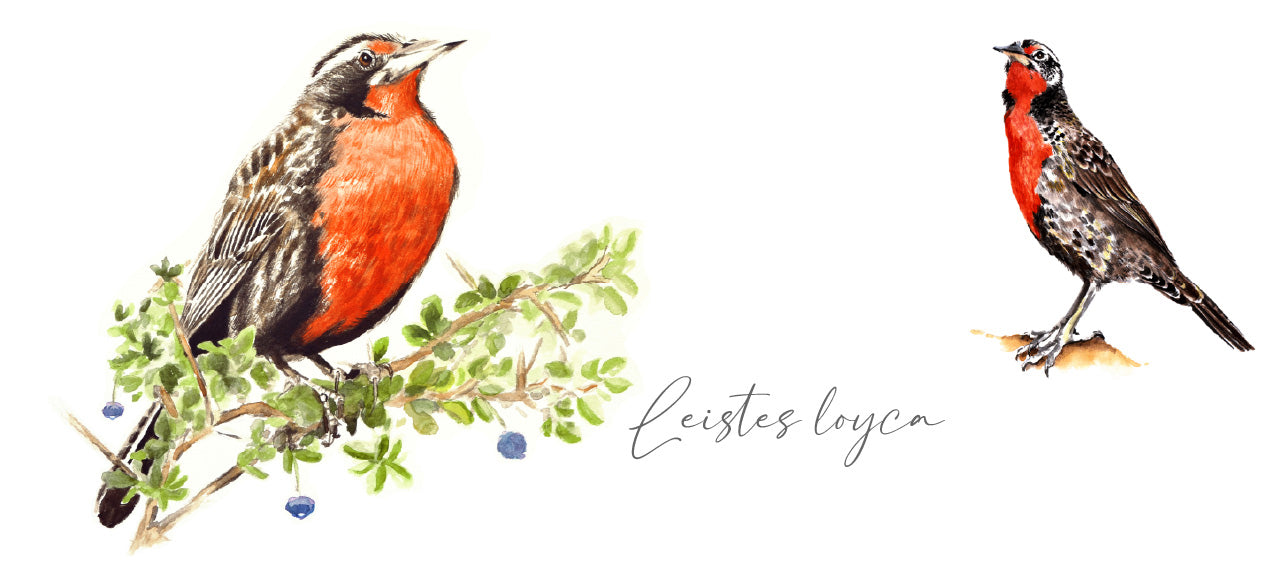 La loica (Leistes loyca), también conocida como pecho colorado o milico, es una de las aves más emblemáticas de Chile. Su vibrante pecho rojo y su canto melodioso la hacen inconfundible en los paisajes del país. Se distribuye ampliamente desde la Región de Atacama hasta la Región de Magallanes, habitando preferentemente en terrenos bajos y húmedos, como pastizales y praderas, aunque también se le puede encontrar en áreas suburbanas y hasta alturas de 2.500 metros.