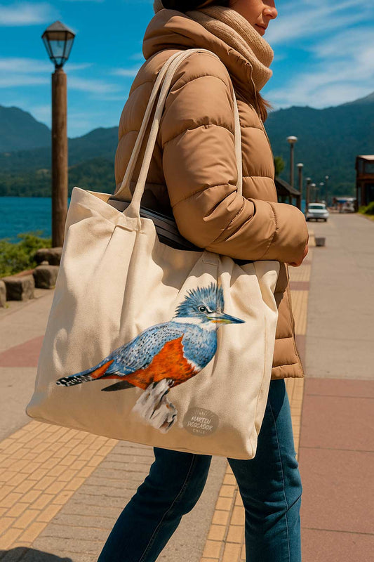 El martín pescador (Megaceryle torquata) es una de las aves más emblemáticas de los ríos y lagos del sur de Chile. Su plumaje azul grisáceo y pecho rufo lo hacen inconfundible mientras se posa en ramas sobre el agua, atento a zambullirse en busca de peces. Su distribución en Chile abarca desde la Región del Biobío hasta Tierra del Fuego, habitando en lagos, ríos, esteros y bahías marinas.
