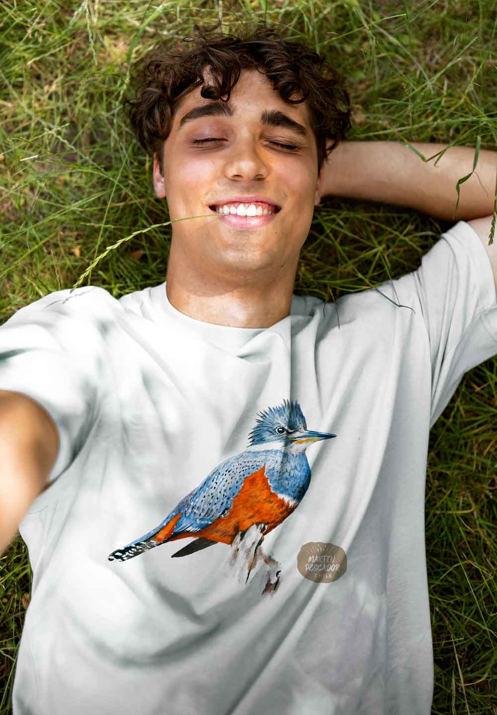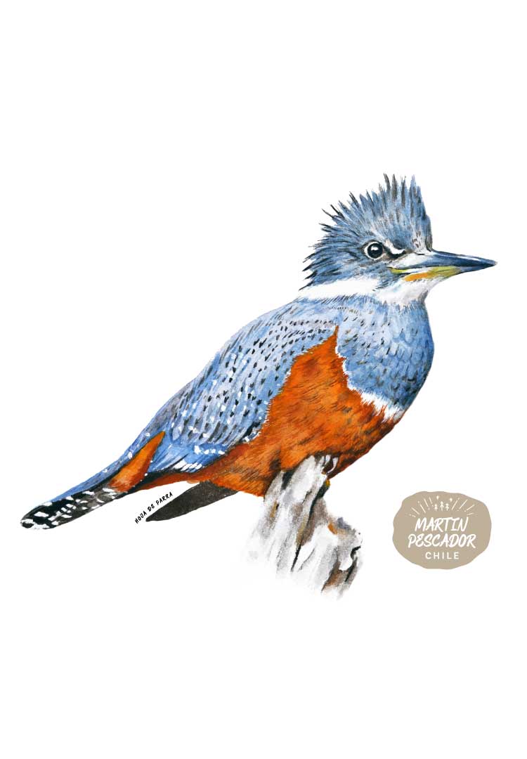 Distintiva ave de aspecto robusto que vive asociado a ríos, lagos, estuarios y arroyos. Se distribuye ampliamente por el Neotrópico, desde el sur de Estados Unidos hasta la Patagonia de Chile y Argentina. En el país la subespecie stellata se extiende desde la Región de Ñuble hasta Cabo de Hornos. Destaca por su plumaje gris azulado, collar blanquecino, vientre rufo, alas moteadas de blanco, cresta pronunciada y pico macizo. La hembra se distingue por presentar una banda azulada en el pecho. Para nidificar construye madrigueras en bancos de tierra o barrancos y ambos miembros de la pareja participan en la incubación y en la alimentación de los polluelos. Durante este periodo se vuelve altamente territorial y a menudo emite estridentes vocalizaciones. Captura su alimento desde perchas altas lanzándose en picada al agua, pudiendo bucear a gran velocidad. Su dieta se compone principalmente de peces, pudiendo incluir anfibios, crustáceos, reptiles e insectos.
