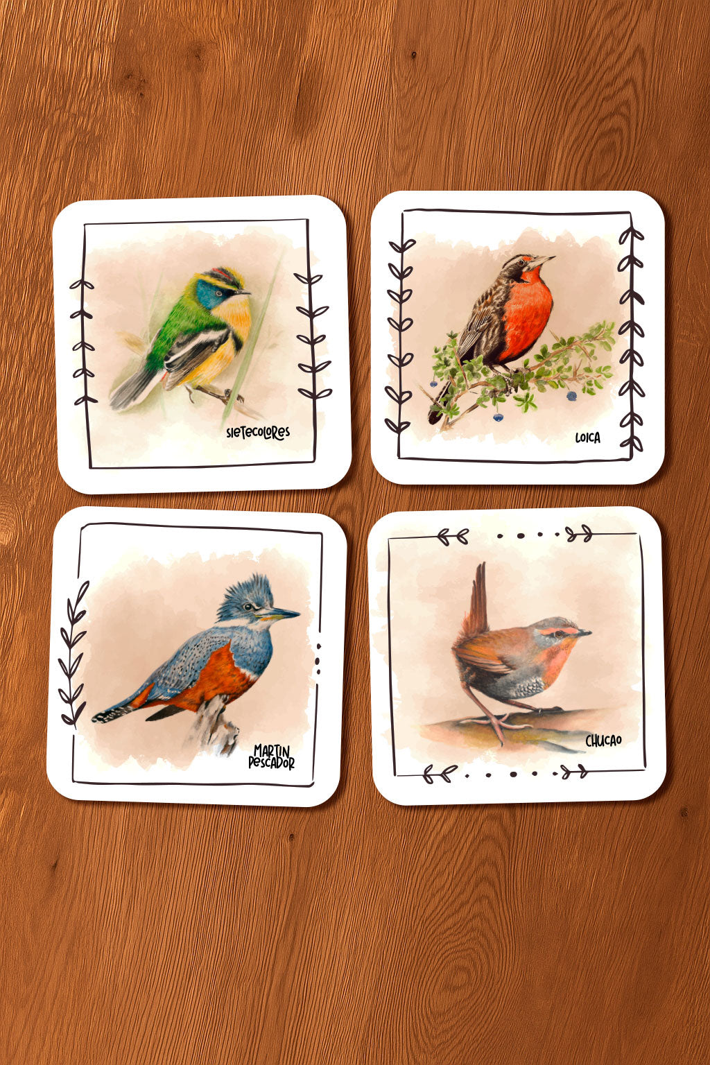 Set 4 Posavasos Aves de Chile
