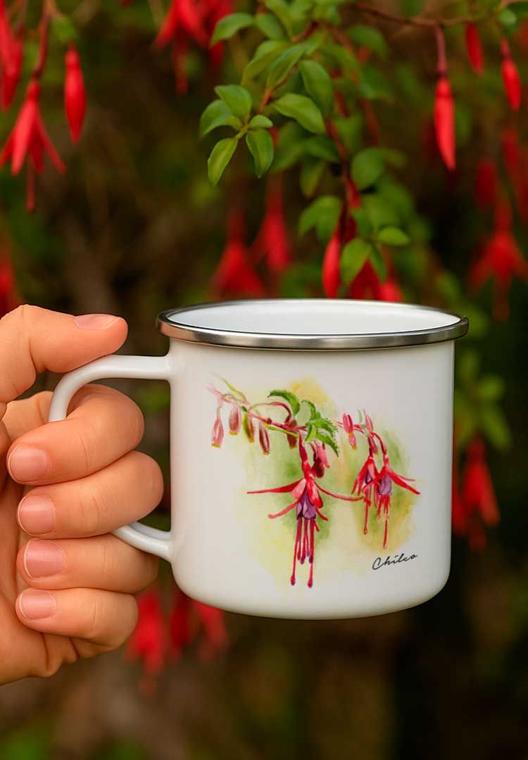 Hermoso tazón enlozado, ideal para excursiones, campamentos o decorar tu cocina ¡Arma tu colección! El esmalte también es un excelente conductor de calor, por lo que nuestro tazón mantendrá tus manos calientes incluso en los días más fríos. Ilustrado e impreso por Hoja de Parra Deco.