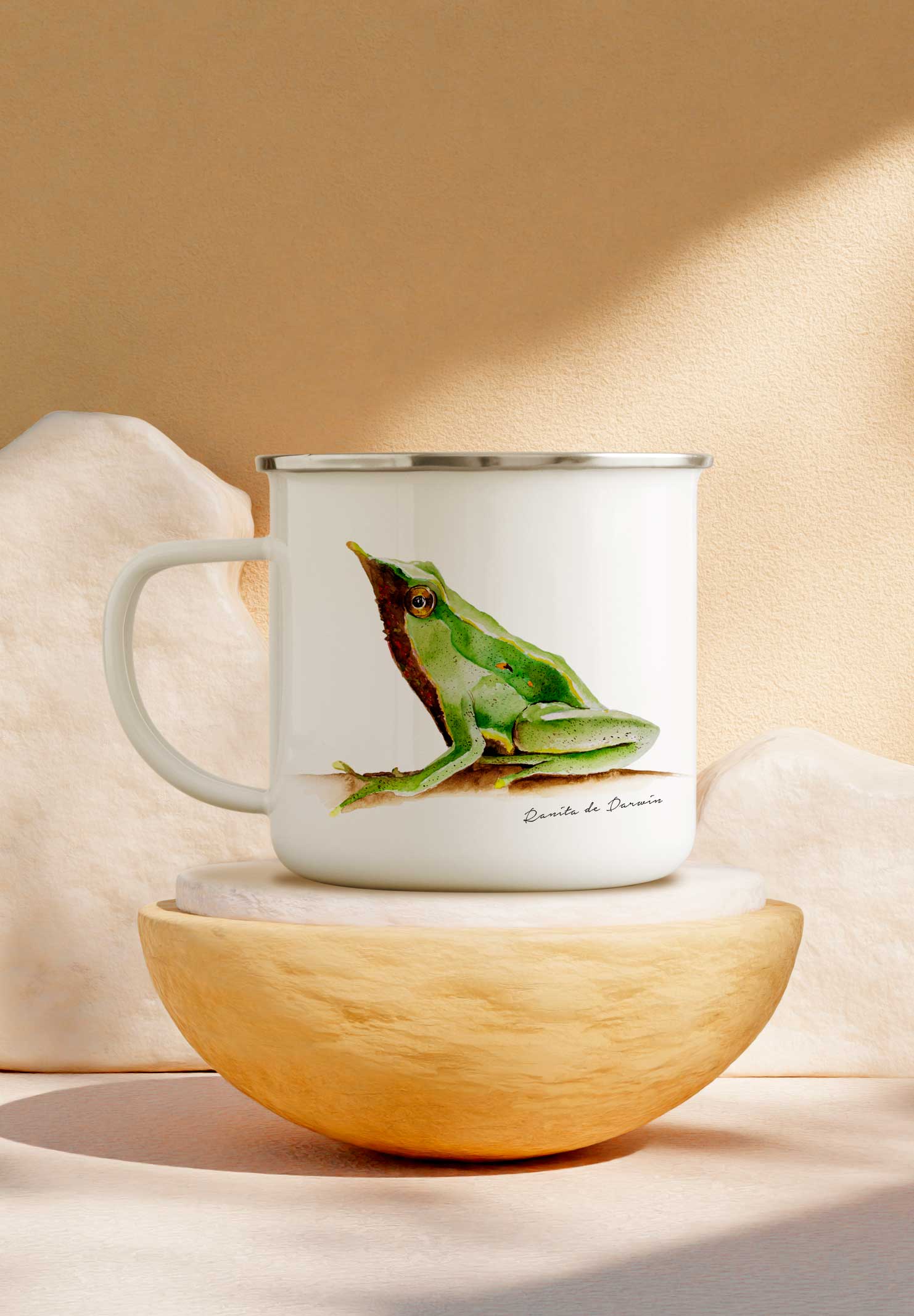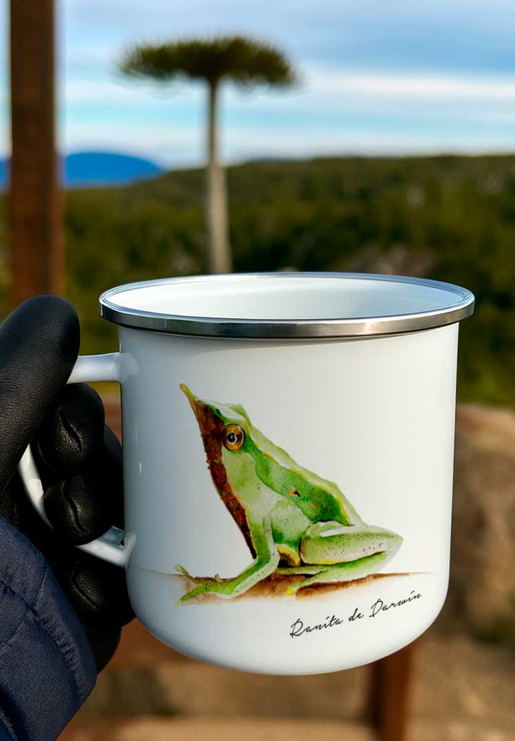 Bello tazón enlozado, ideal para excursiones, campamentos o decorar tu cocina ¡Arma tu colección! El esmalte también es un excelente conductor de calor, por lo que nuestro tazón mantendrá tus manos calientes incluso en los días más fríos. Ilustrado e impreso por Hoja de Parra Deco.