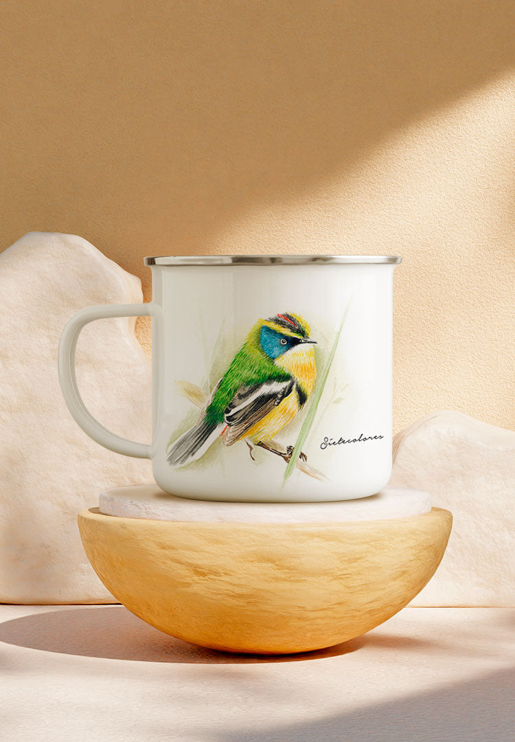 Hermoso tazón enlozado, ideal para excursiones, campamentos o decorar tu cocina ¡Arma tu colección! El esmalte también es un excelente conductor de calor, por lo que nuestro tazón mantendrá tus manos calientes incluso en los días más fríos. Ilustrado e impreso por Hoja de Parra Deco.