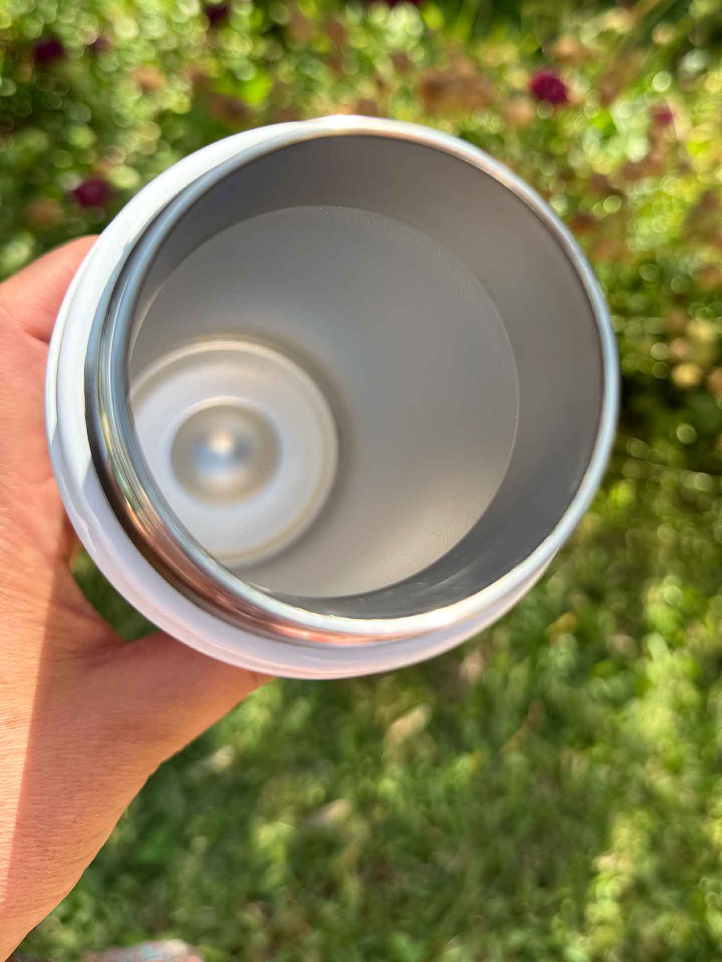 Termo individual con doble pared aislante de acero inoxidable y tapa de madera de bambú con asa para llevar cómodamente en tus manos, ideal para tus actividades diarias.